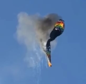 As chamas aumentaram, atingiram a boca do balão, e o cesto se desprendeu do envelope. Isso resultou na queda fatal das oito pessoas que não conseguiram sair a tempo